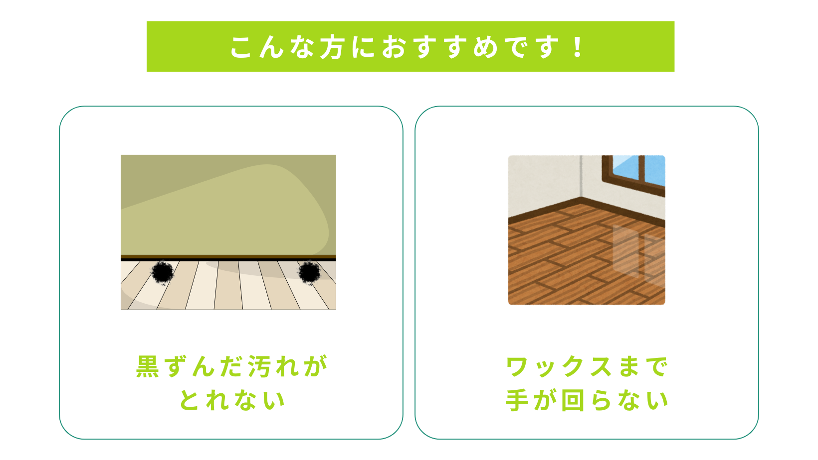 • 既存ワックスの状態により、剥離作業(オプション)が必要となる場合があります。